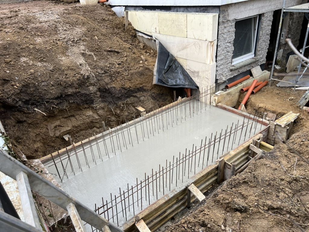 Endlich ist es so weit: Der Estrich wird eingebaut.